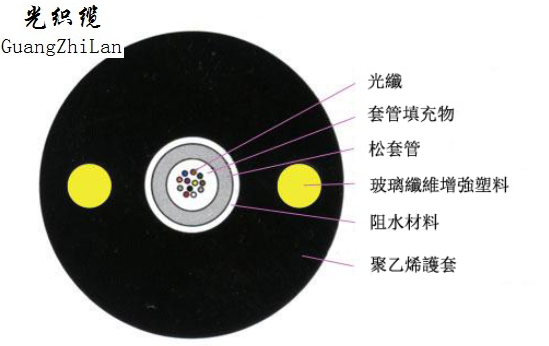 光織纜光纖GYFXY 光纜的結構是將 250μm 光纖套入高模量材料制成的松套管中,松套管內填充防水化合物。松套管外加阻水材料以保證光纜縱向阻水,兩側放置兩根平行玻璃纖維增強塑料(FRP)后擠制聚乙烯護套成纜。